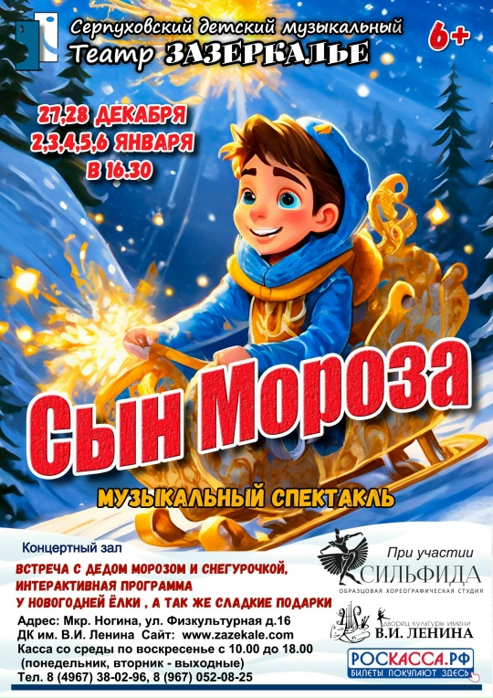 Музыкальный новогодний спектакль "Сын Мороза", интерактивная праздничная программа в фойе, встреча с любимыми новогодними героями сказки.